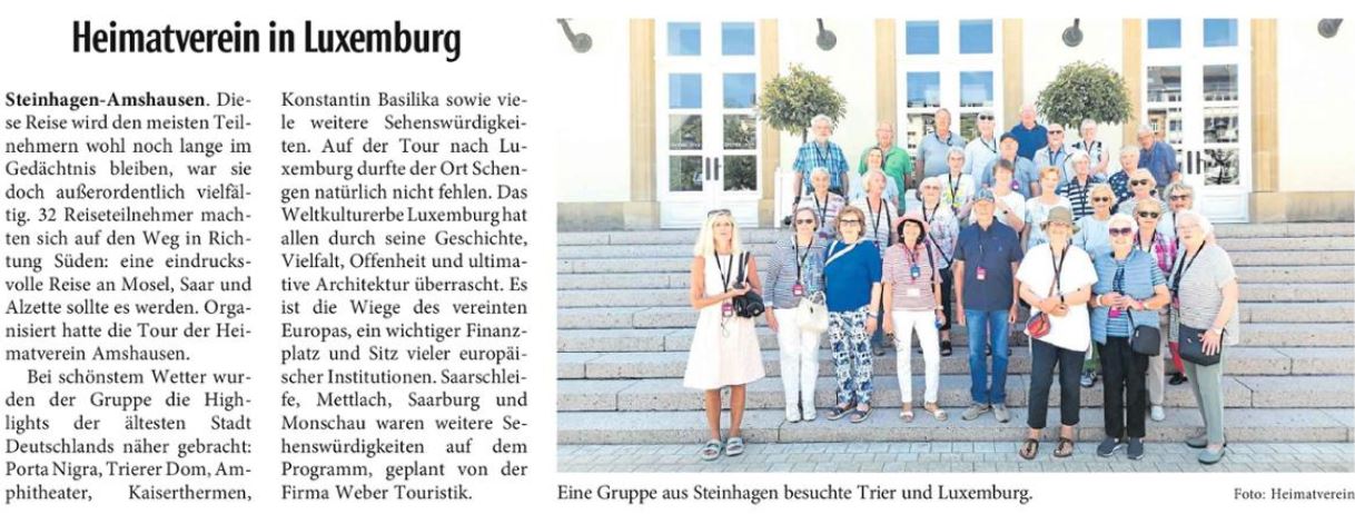 Heimatverein in LuxemburgJuli 2025Haller Kreisblatt