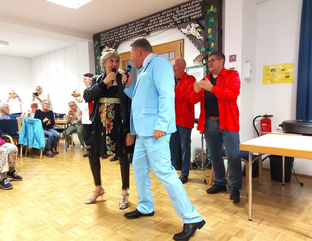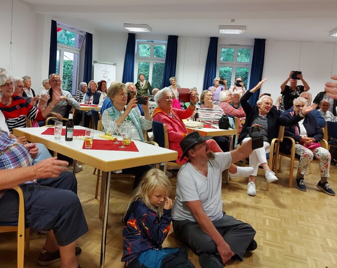Deutlich über 100 Besucher(innen) -„Krawall“ nur unter 100 – waren vom „Sommerabend“ des Heimatvereins Amshausen begeistert. Das Rekordergebnis geht auf das sorgfältig geplante Ereignis zurück. Gegen Regen mit Zelten gewappnet, auf viele Getränke und diverse Grillsachen vorbereitet (Axel Grether), so startete das Programm mit dem neuen Vereinshit “In einem Dorf bei Teutos Höh’n“ (Bernd Meerkötter) und dem Plattdeutschen Stück „ Frau Doktor und der Patient“ (Günter Budweg, Margret Krullmann und Renate Strakerjahn). Die Stimmung erreichte ihren Höhepunkt mit der Showtruppe des HV (Leitung Jochen Hempel), verkleidet als die Flippers, als Roland Kaiser, Maite Kelly und den Wildecker Herzbuben. Der Abend war ein echtes Highlight in der Vereinsgeschichte.